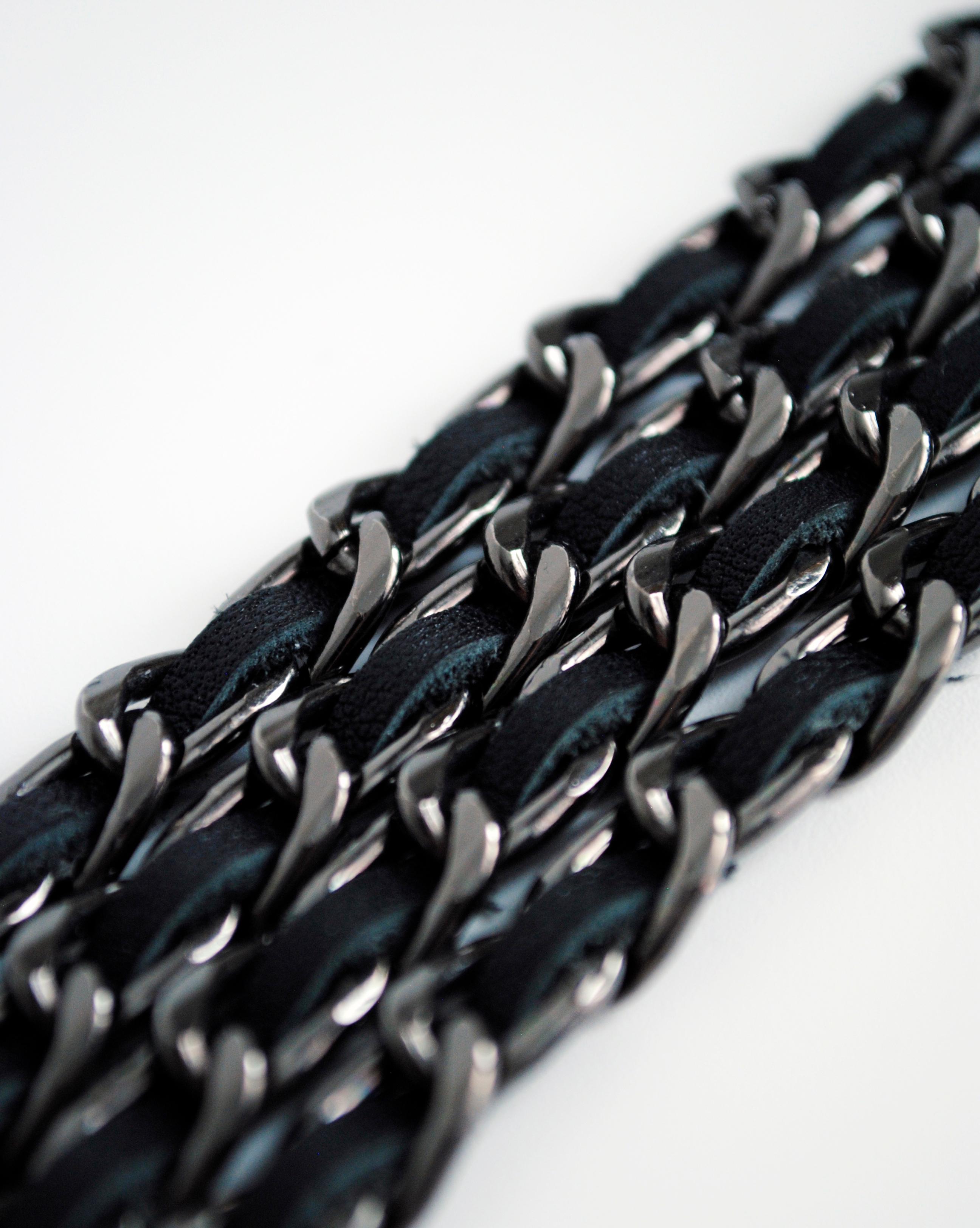 Цепь для сумки с вставкой из натуральной кожи. Длина 120 см, ширина звена 8 мм. Цвет: темный никель Состав: металл, натуральная кожа 100%
