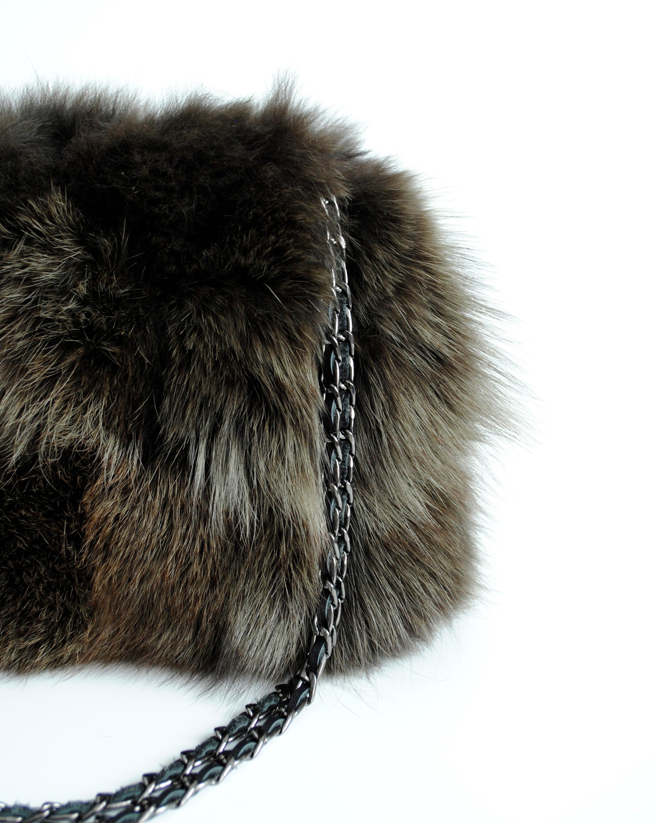 Сумка кросс-боди из плотного и густого меха необычного серо-бурого цвета. Совсем небольшая с одним отделением на магнитной застежке, которая вместит ваш телефон, картхолдер и ключи. Металлическая цепь с вставкой из натуральной кожи. Внутри винтажный деним из 100% хлопка. Размер (см): внешний 30х20, внутренний 20х14 Состав: натуральный мех песец, хлопок 100%, металл 120 см, натуральная кожа, магнитная застежка Цвет: буро-серый Цвет подклада: черный В комплекте: цепочка, пыльник