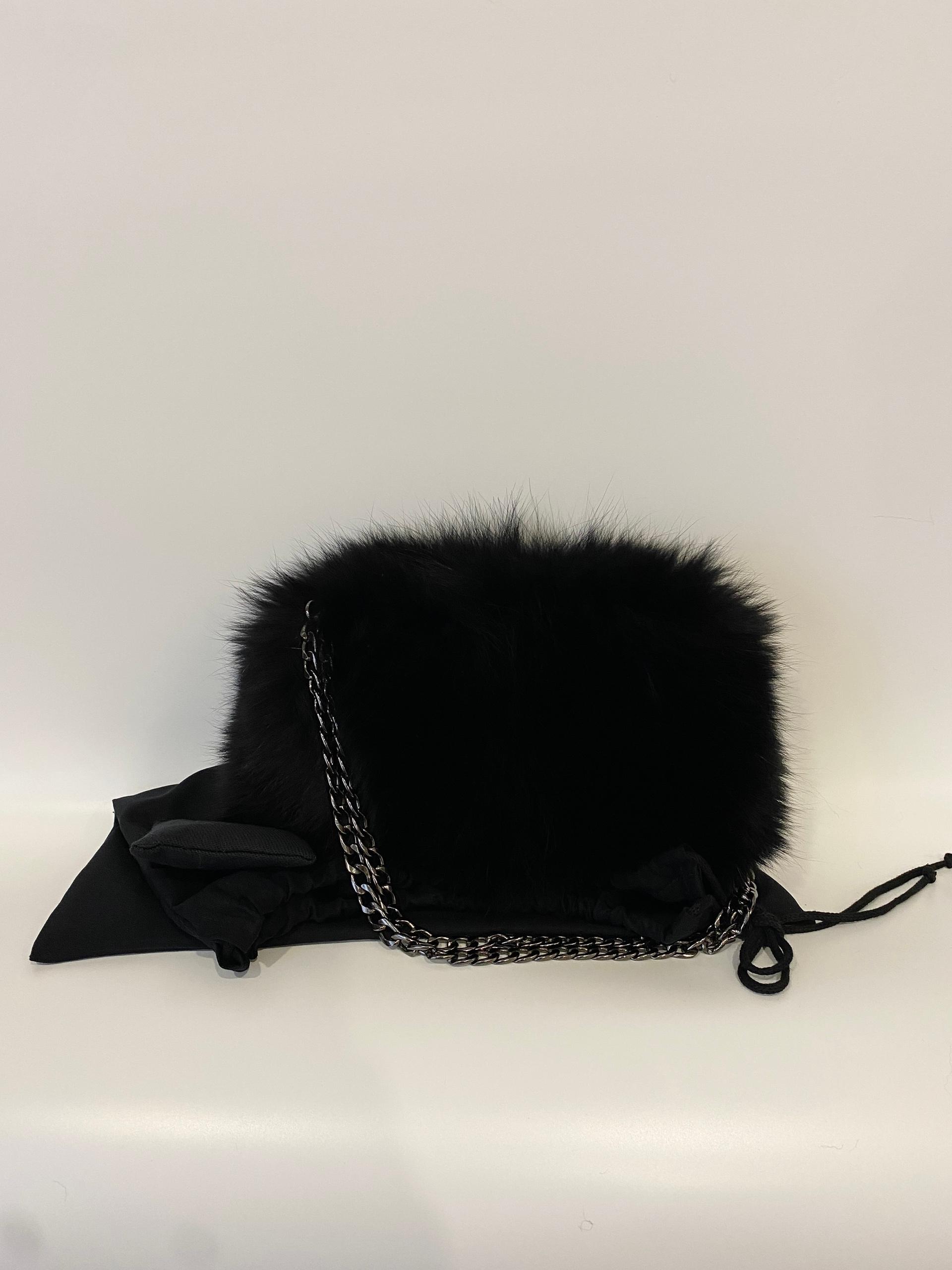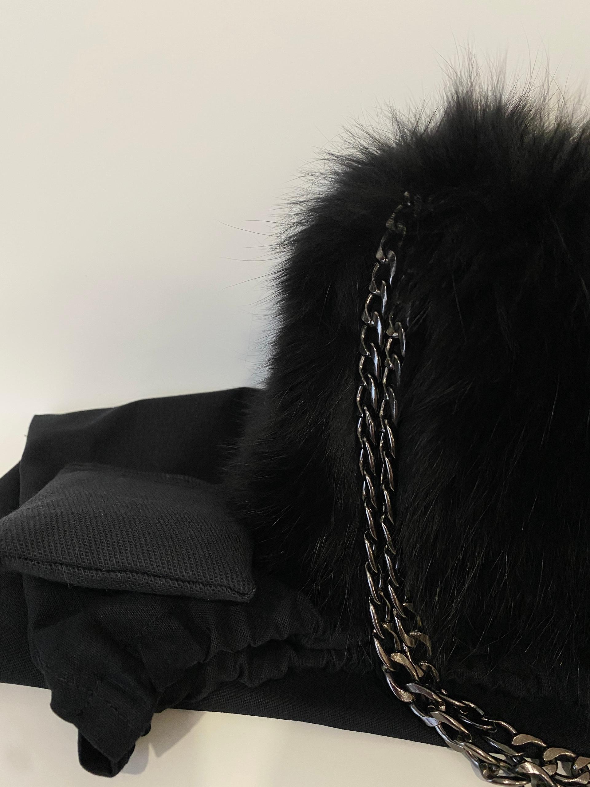 Маленькая черная сумка из пушистого меха песца глубокого черного цвета. Внутри деним из 100% хлопка. Вмещает телефон и ключи. Размер (см): внутренний 21х12 Состав: натуральный мех песец, хлопок 100%, металл 120 см, магнитная застежка Цвет: черный Цвет подклада: черный В комплекте: цепочка, пыльник