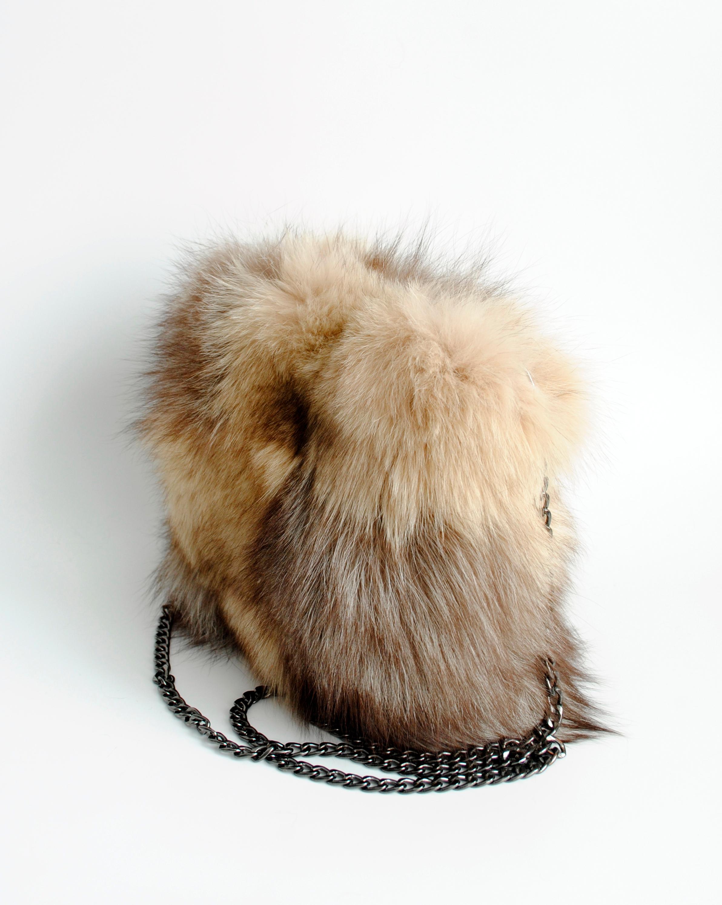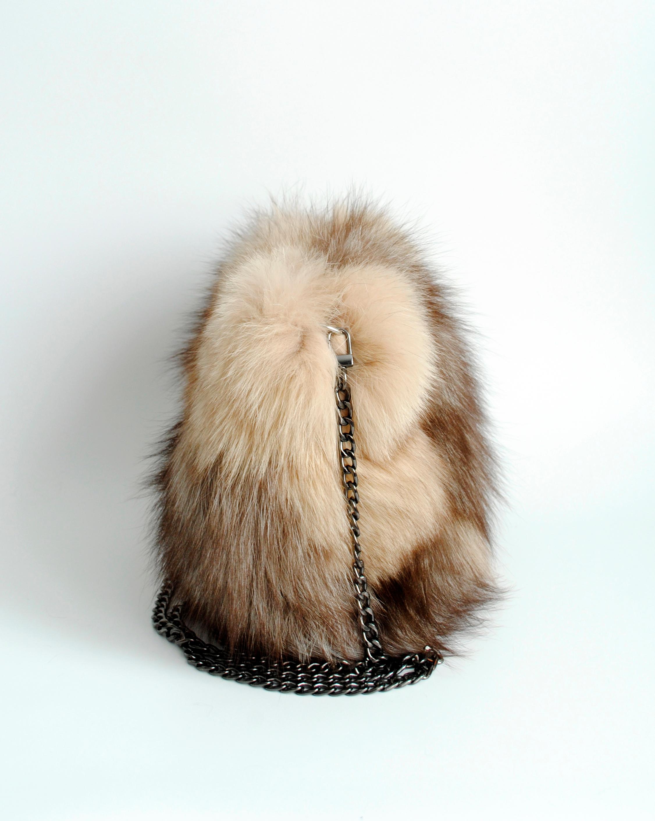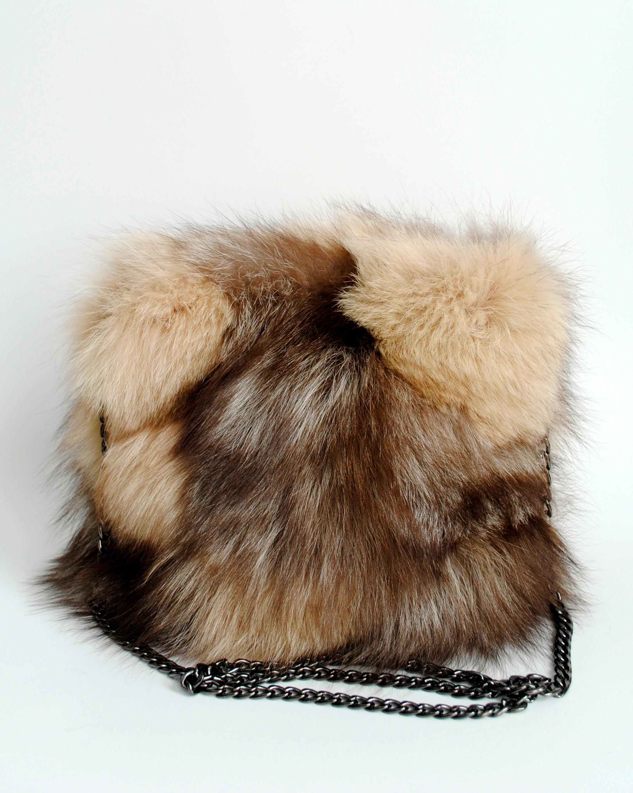 Сумка среднего размера из натурального и невесомого меха песца и чернобурки. Для подклада использовался винтажный деним из 100% хлопка. Одно отделение, в которое поместятся телефон, ключи, картхолдер и девчачьи штучки. Размер (см): внешний 30х30, внутренний 22х19 Состав: натуральный мех песец, натуральный мех чернобурка, хлопок 100%, металл 120 см, магнитная застежка Цвет: бежево-серый Цвет подклада: черный В комплекте: цепочка, пыльник